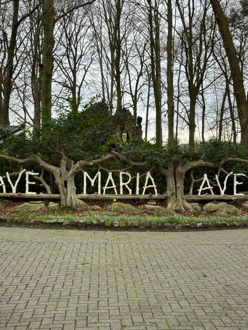 We gingen vroeg. We brachten de kinderen naar school en reden door. Dat heeft een reden want het kan nogal druk zijn op die plek. Hele bussen vol stoppen er met mensen die ook willen loslaten of i.i.g. dichtbij Maria en God willen zijn. Dus vroeg er heen is het beste. (Zeker als je met je keteltje door het park wandelt, kan er best gek uitzien)