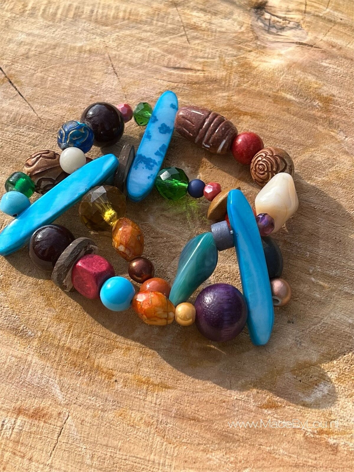 Materiaal: schelp, diverse soorten kralen. Ook tweedekans kralen. Nikkel vrij
