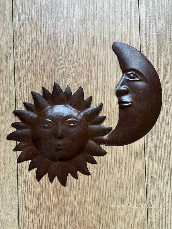 Deze zon en maan hanger zijn ontzettend leuk om meer te hangen of te zetten. Het roestige uiterlijk geeft een stoere uitstraling.