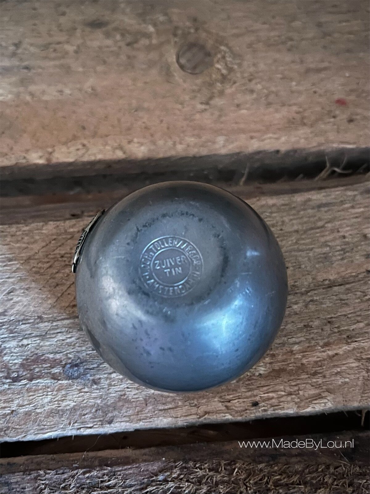 Van origine is dit een asbak. Maar met een beetje fantasie voor zo veel andere dingen te gebruiken. Dit kleine zuiver tinnen "potje" zal zeker mooi staan op je altaar.