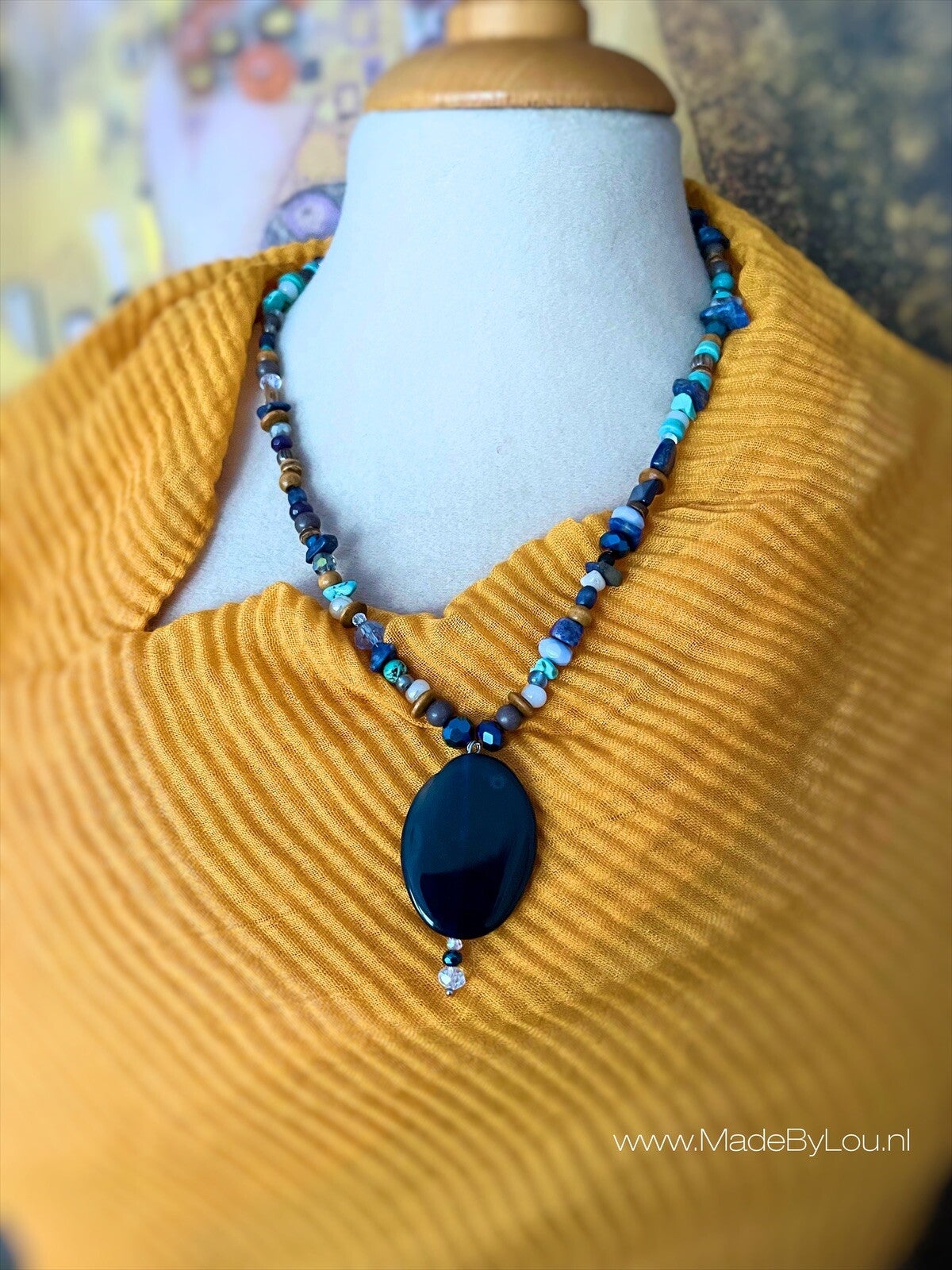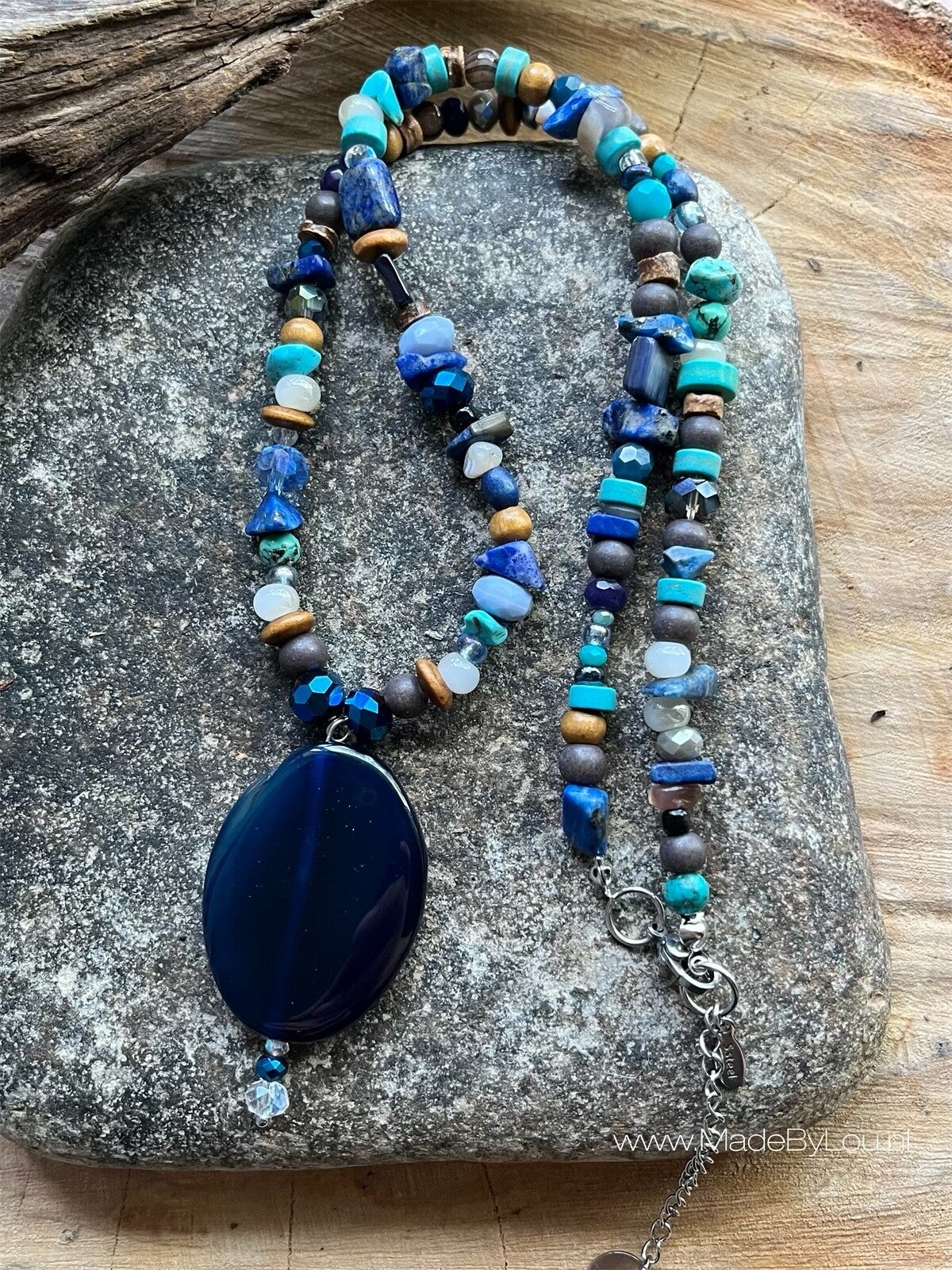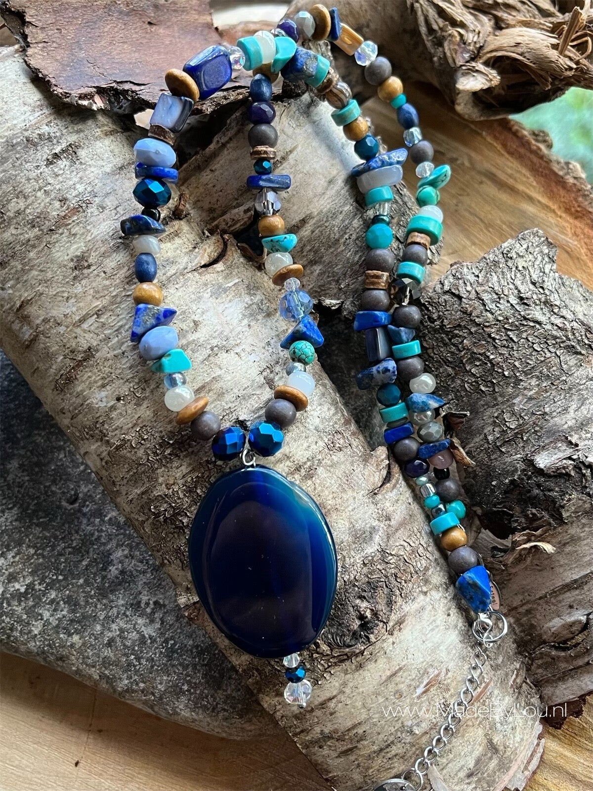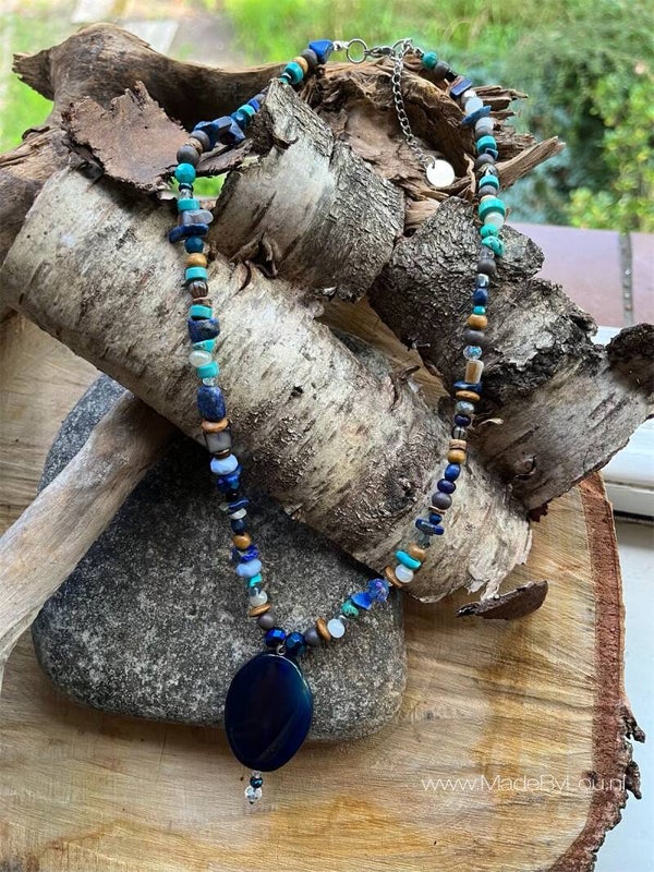 Água (Portugal) is een prachtige ketting die echt in het oog springt. De verschillende kralen en een steen maken het echt tot een prachtig exemplaar. Eenvoud maar niet eenvoudig.