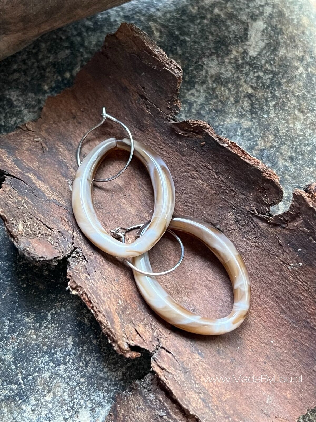 Wooda (Pools) zijn simpele maar elegante oorbellen. Ze zijn gemaakt van stainless steel en acryle hangers. Super lichte oorbellen maar zo chique. Keuze uit 3 kleuren.