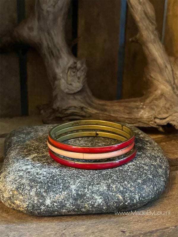 Mooie dunne armbanden. Set van 3. De kleuren zijn rood tot roze in een ombré effect.