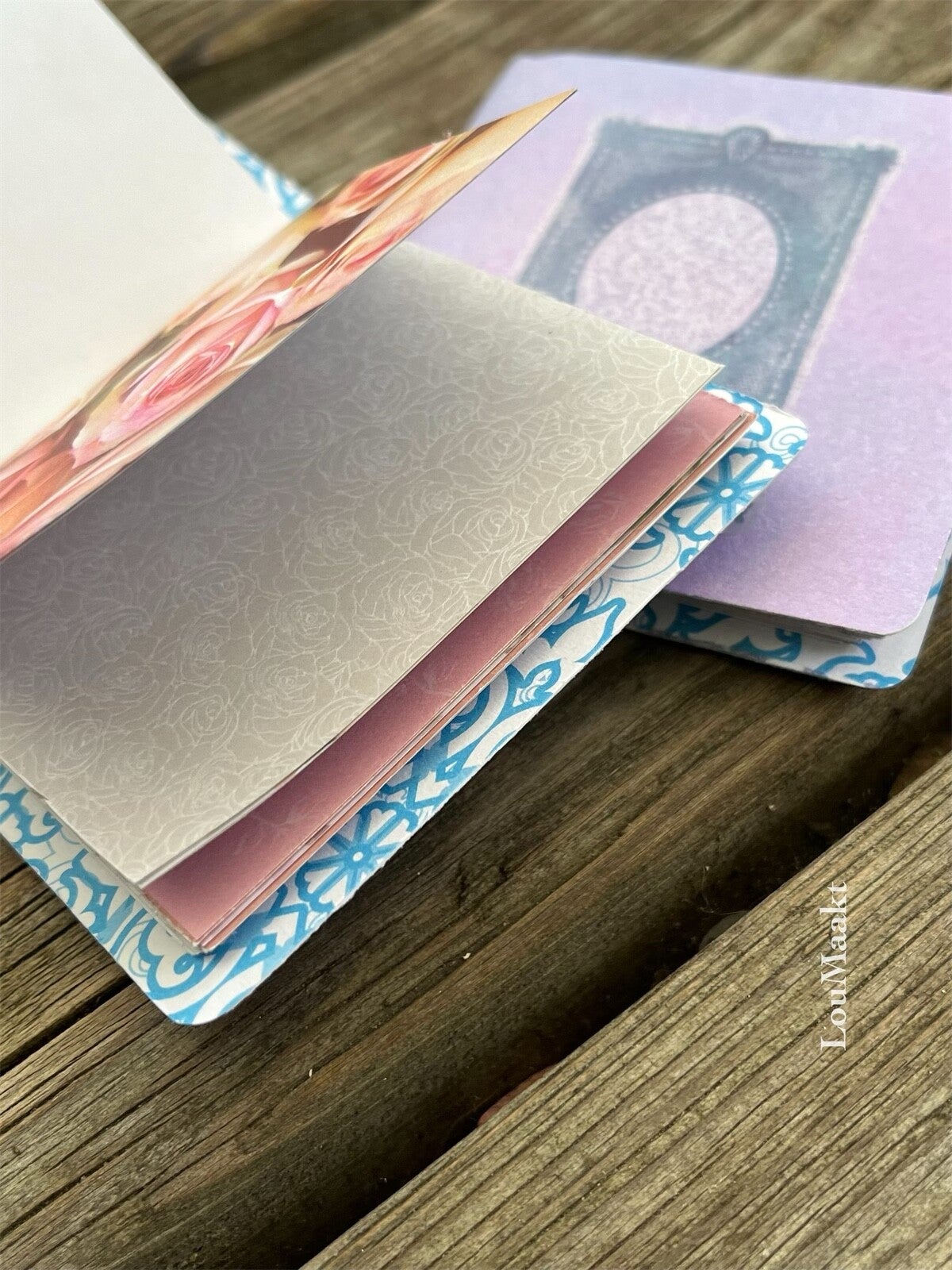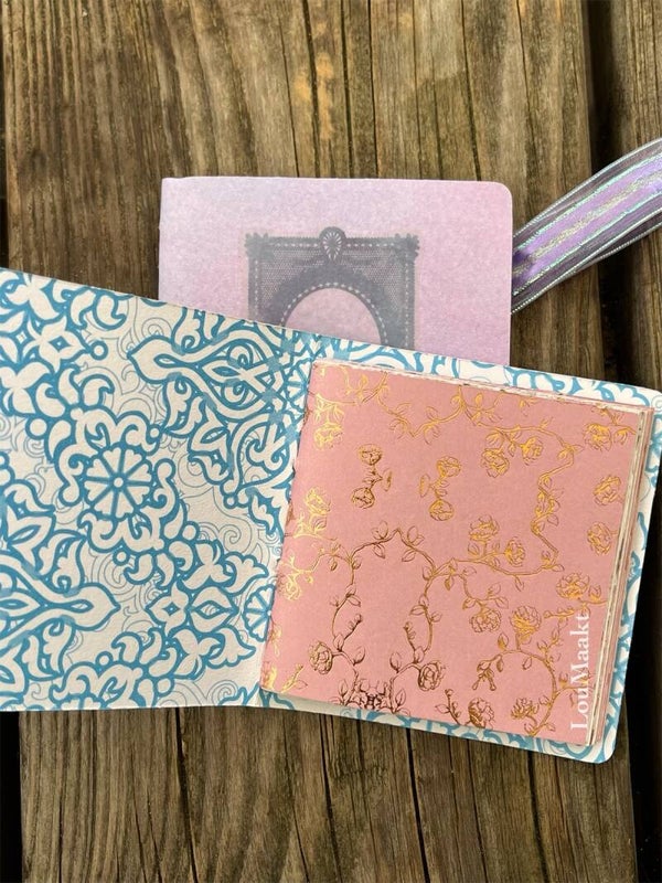 Deze leuke mini boekjes zijn super leuk! Vierkant voormaat met diverse soorten papier voor een onwijze vrolijke uitstraling. Set van 2 samen gevoegd met een leuk strikje.