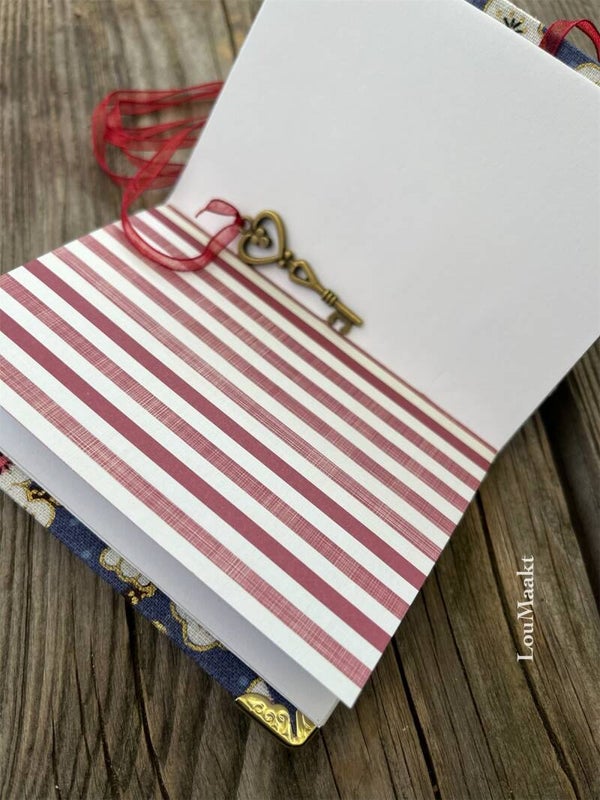 Prachtig boekje die je "dicht kan doen" met de sleutel voor al je geheimen. Het boekje is met stof bekleed en van binnen bekleed met prachtig papier. Echt een beauty.