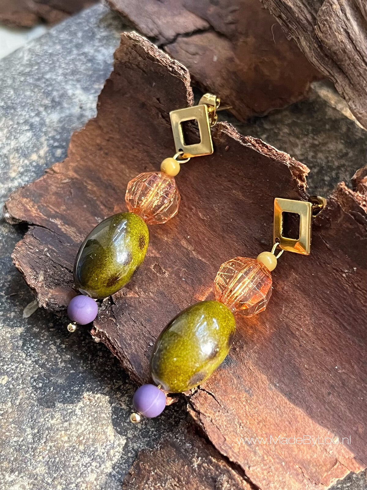 Terre (Frans) zijn net een wat andere soort oorbellen dan de rest. De kleuren zijn net wat uitgesprokener. Samen met het goud echt een plaatje.