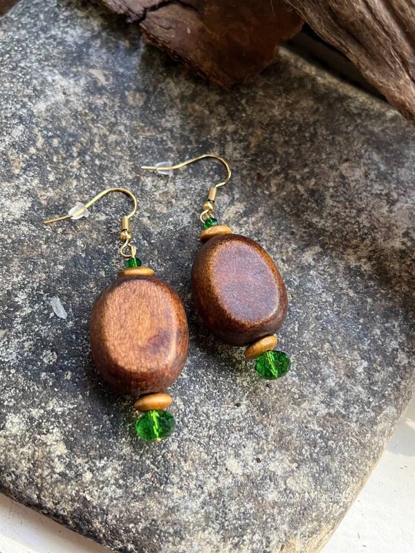 Zemlja (Bosnisch) zijn prachtige houten oorbellen met een groene kraal. Met de goude afwerking echt een plaatje.