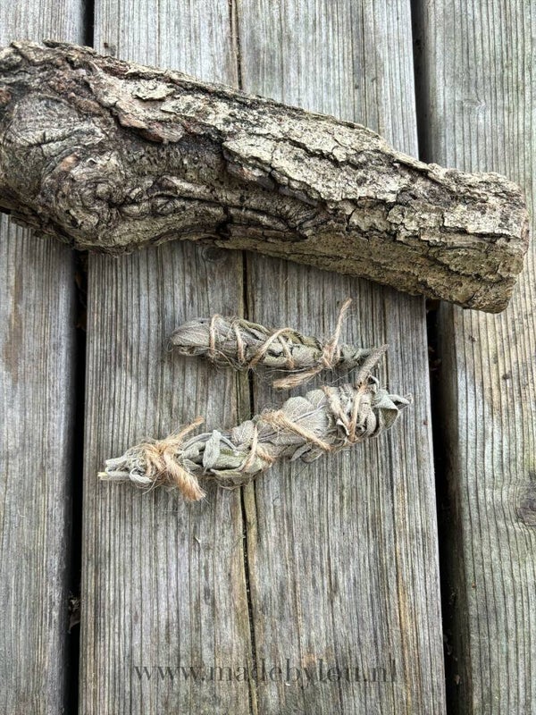 Witte Salie smudge sticks. Zelf gemaakt en uit eigen tuin. Witte salie is een sterk reinigende smudge kruid. Het opent de hartenergie. Iedeaal je zelf of je huis te reinigen van negatieve energie.