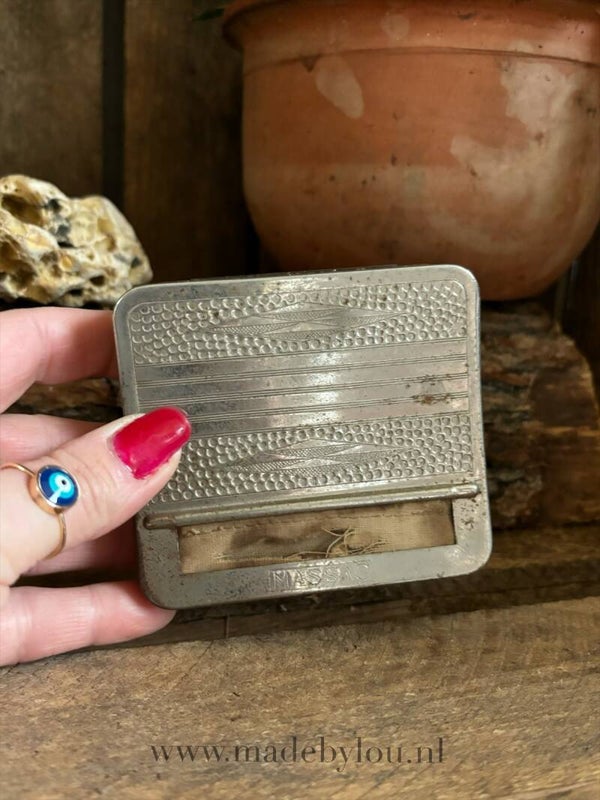 Ouderwets sigaretten doosje. Ideaal om dingen in op te bergen. Stof is een klein beetje beschadigd (zie foto) Kan nog op en dicht.