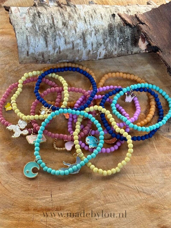 Armbandjes op elastiek in de kleur paars/roze.