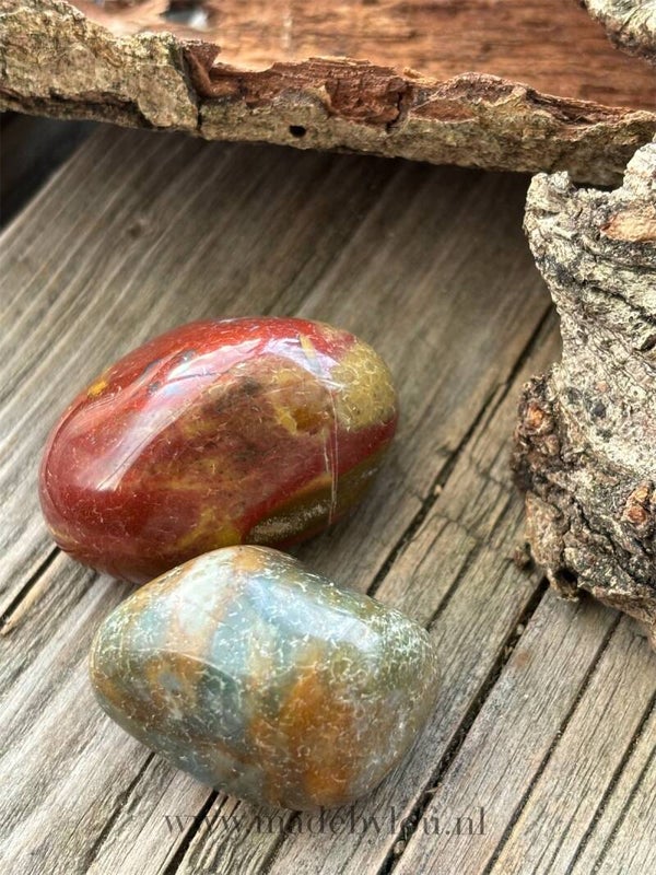 Mooie polychroom jaspis stenen gepolijste. Steen is tussen de 32 en de 49 gram.