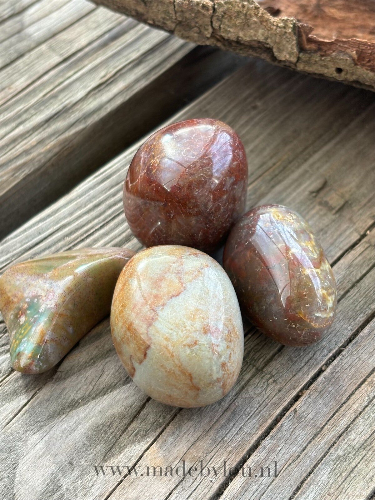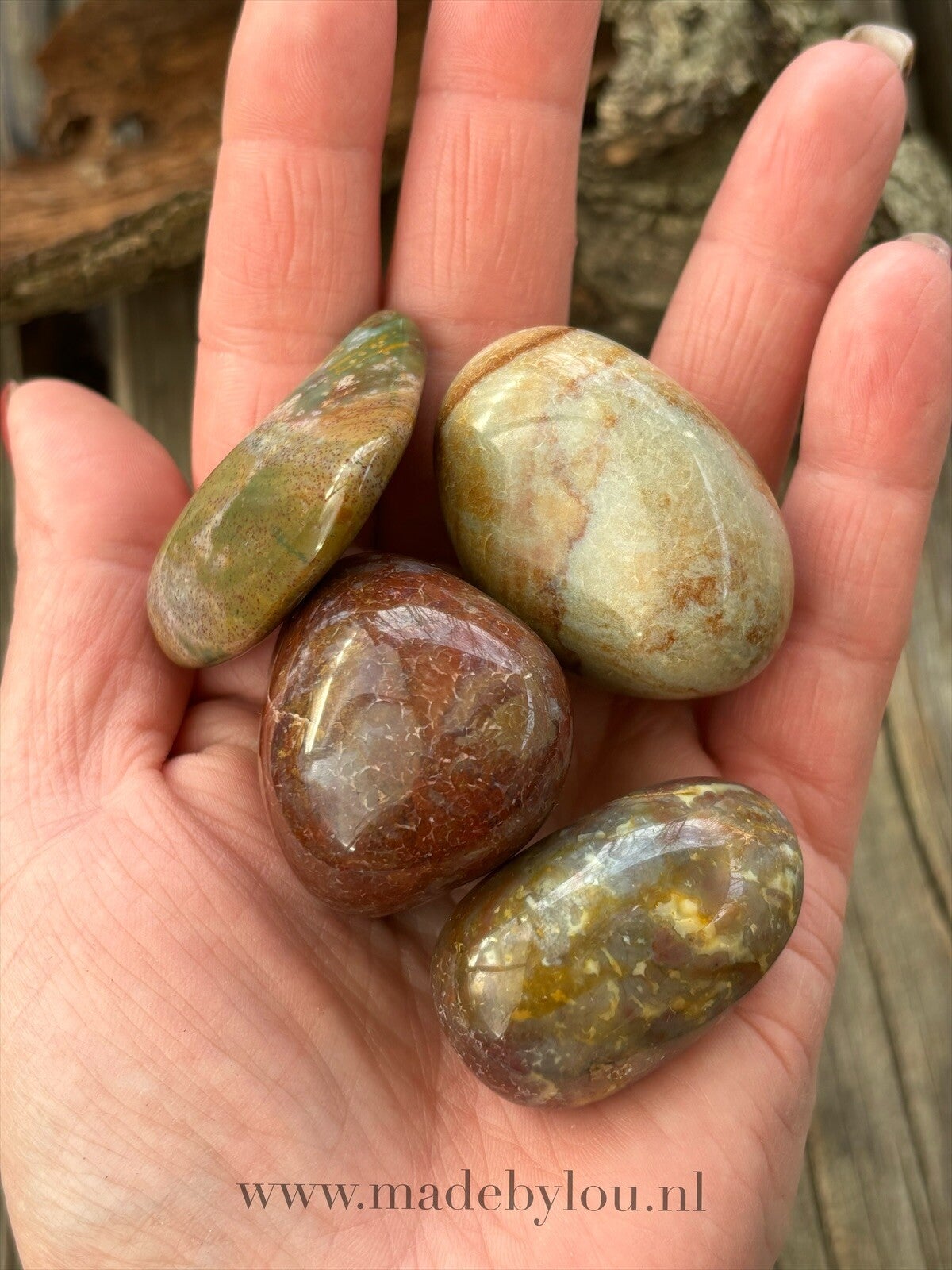 Mooie grote gepolijste oceaan jaspis knuffel stenen.