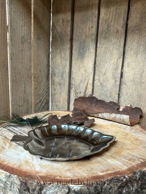 Mooi zilverkleurige schaaltje in blad vorm. Mooi voor stenen of sieraden.