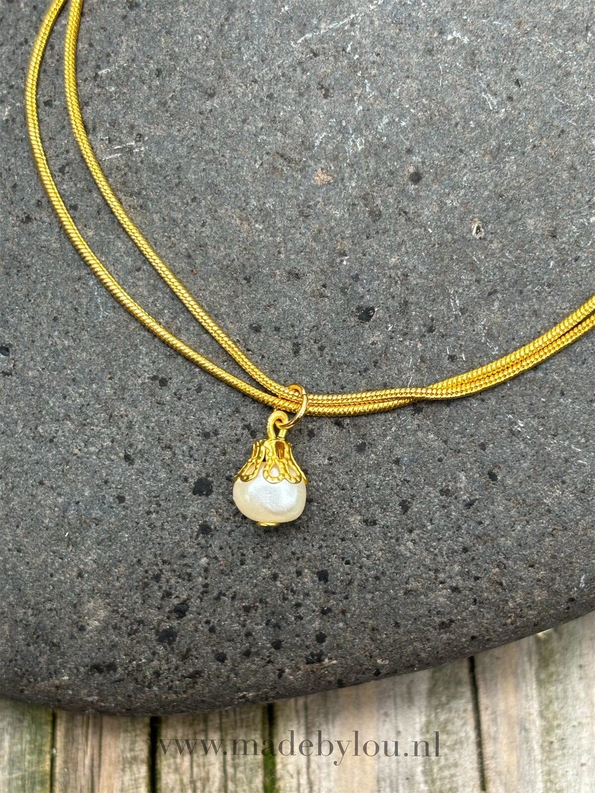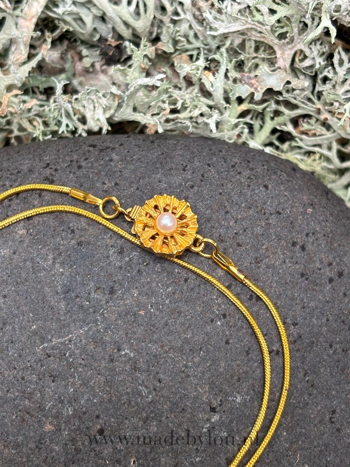 Prachtige armband met een parel en een bloem sluiting. Hoe je hem ook draagt hij is van alle kanten beeldschoon.