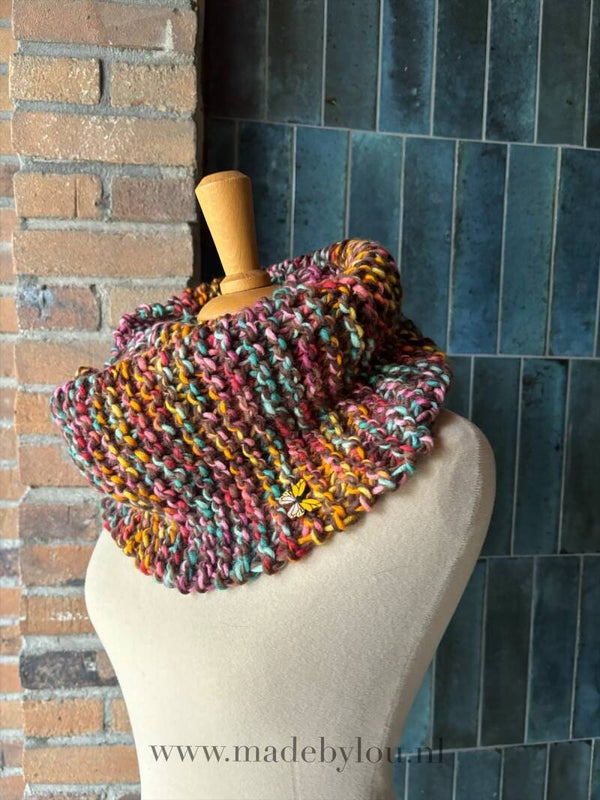 Prachtige warme winter sjaal in een smaller model. Deze sjaal is hand gebreid en als een col te dragen.