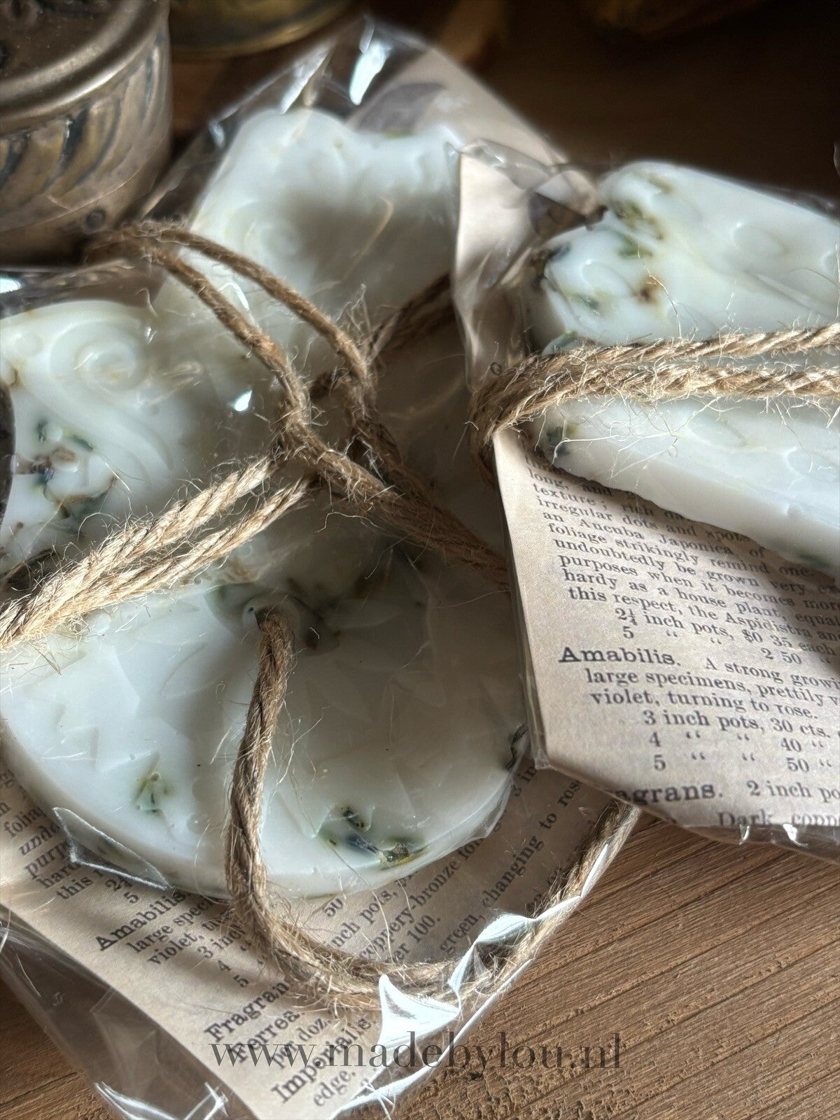 Heerlijk ruikende zeep op basis van Shea Butter. Handgemaakt door mij met de heerlijkste etherische oliën. Genot voor body en mind. De zeep stukken bevatten ook kruiden en bloemen voor een nog ultiemere beleving.