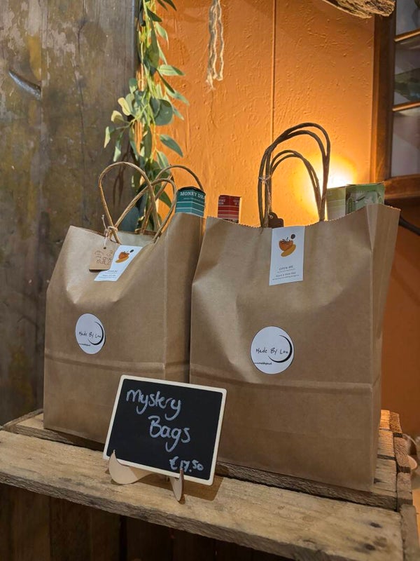 Een tas vol leuks en een enorme verrassing. Producten zoals je ze van mij kent en vaak zelf gemaakt. De waarde is tussen de €40 en de €50 als het niet meer is.