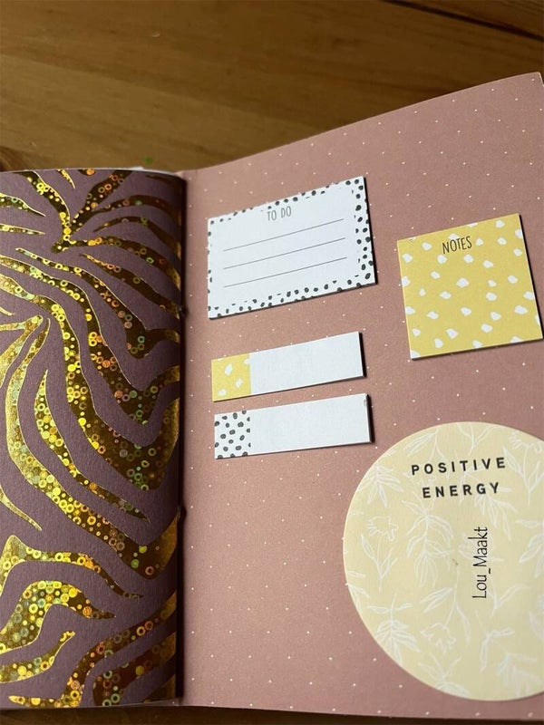 Aan de achterkant heb je briefjes om te plakken.