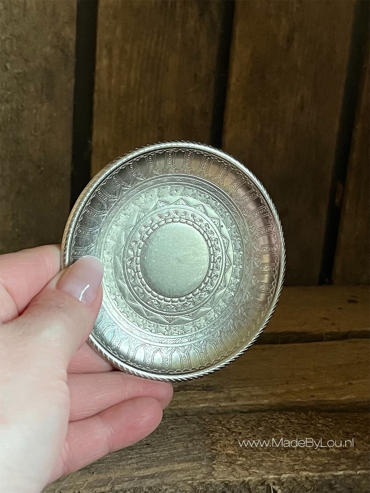Prachtige plateautjes om een kaars op te zetten. Tweedekans. Het zilveren plateautje heeft een heel klein mini licht paars plekje op de bovenkant. Bijna niet zichtbaar maar het zit er wel.
