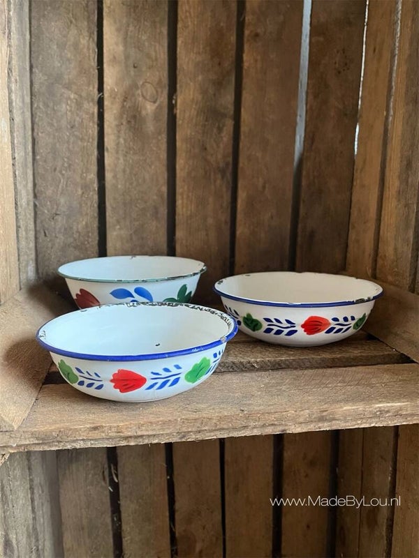 Staat: gebruikt. Heeft ook gebruikssporen (zie foto) maar dat geeft juist charme aan de schalen in z'n oudheid. Tweedekans artikel.
